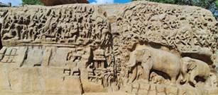 fotos fra templer, museer og offentlige steder af statuer, relieffer og